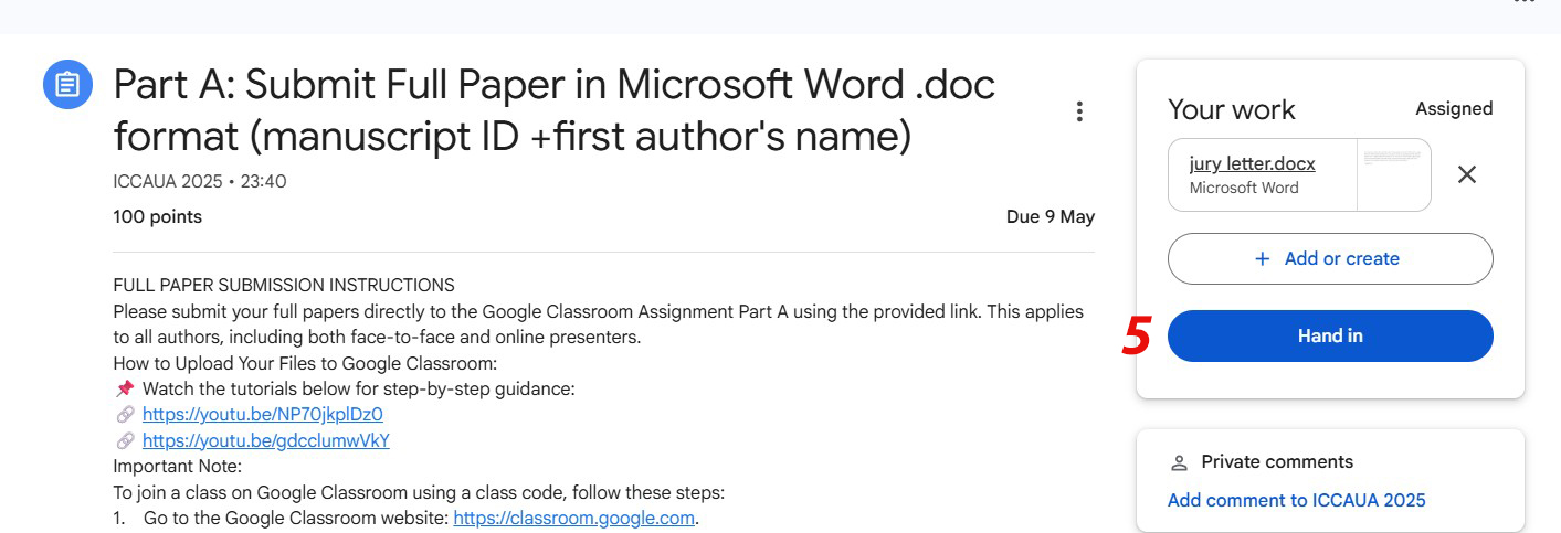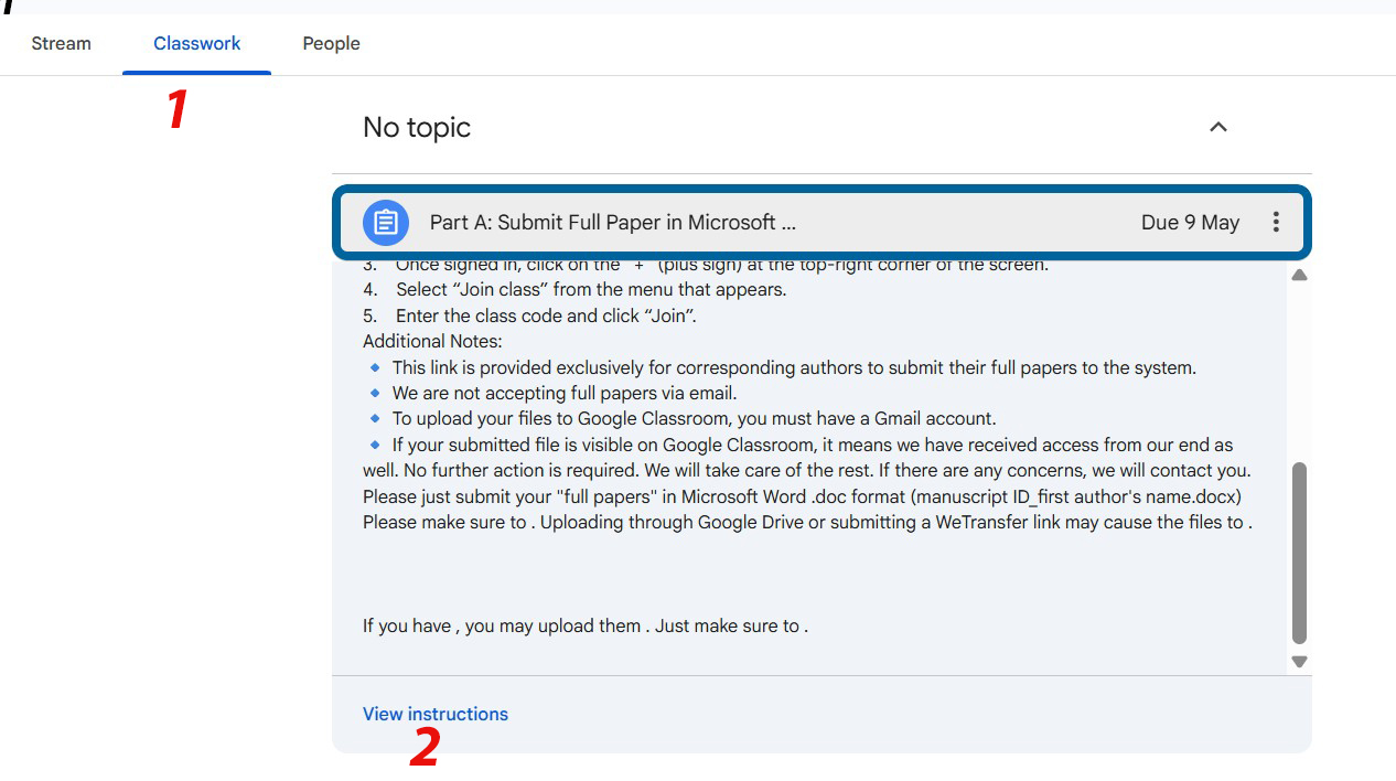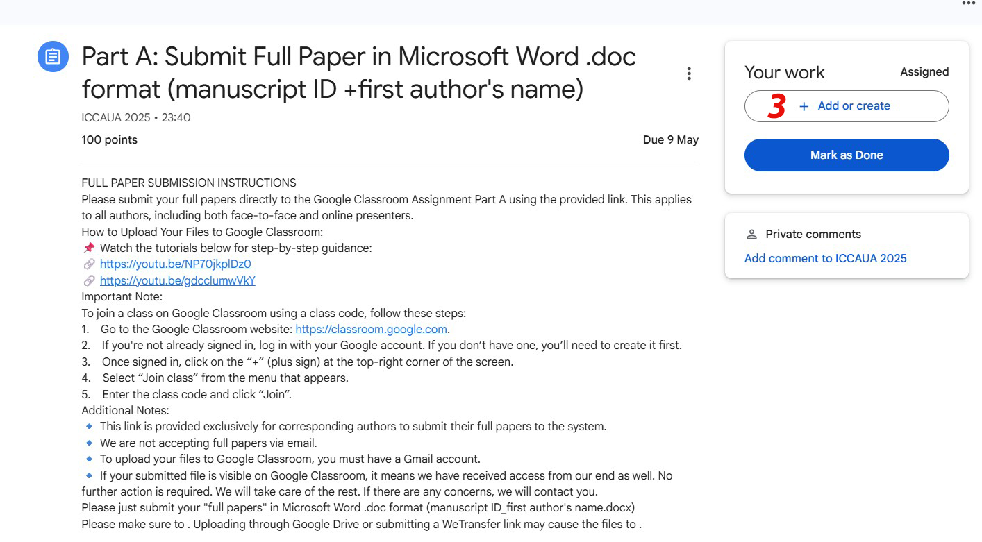 -We are not accepting full papers by email, so, please make sure to submit your file just to Google Classroom.